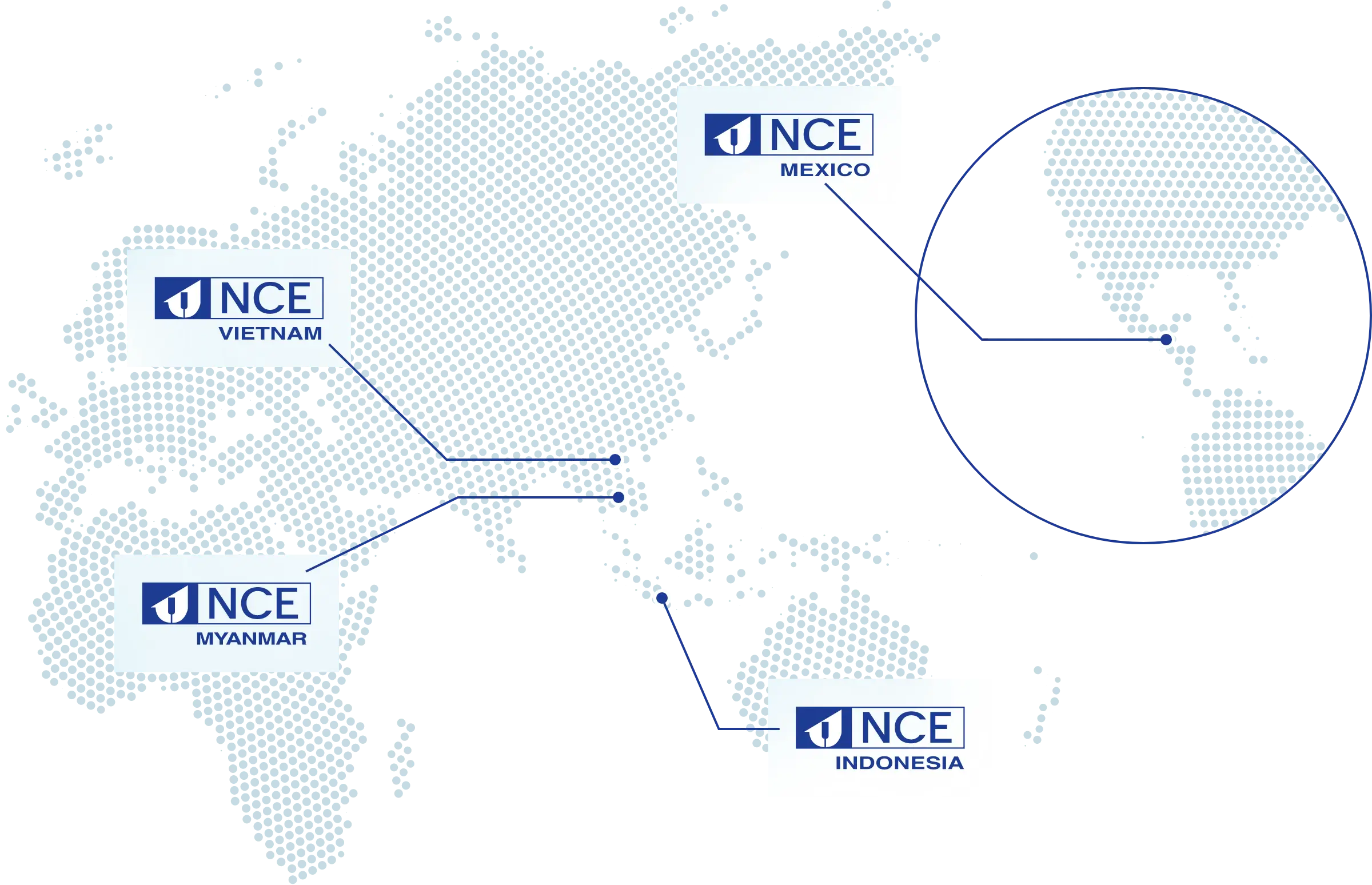 Nakagawa Chemical Equipment (NCE) has each countries location as well as additional associated companies . We utilize this corporate network to develop and sell high-quality water treatment and surface finishing equipments. The following is an introduction to NCE’s overseas locations.
